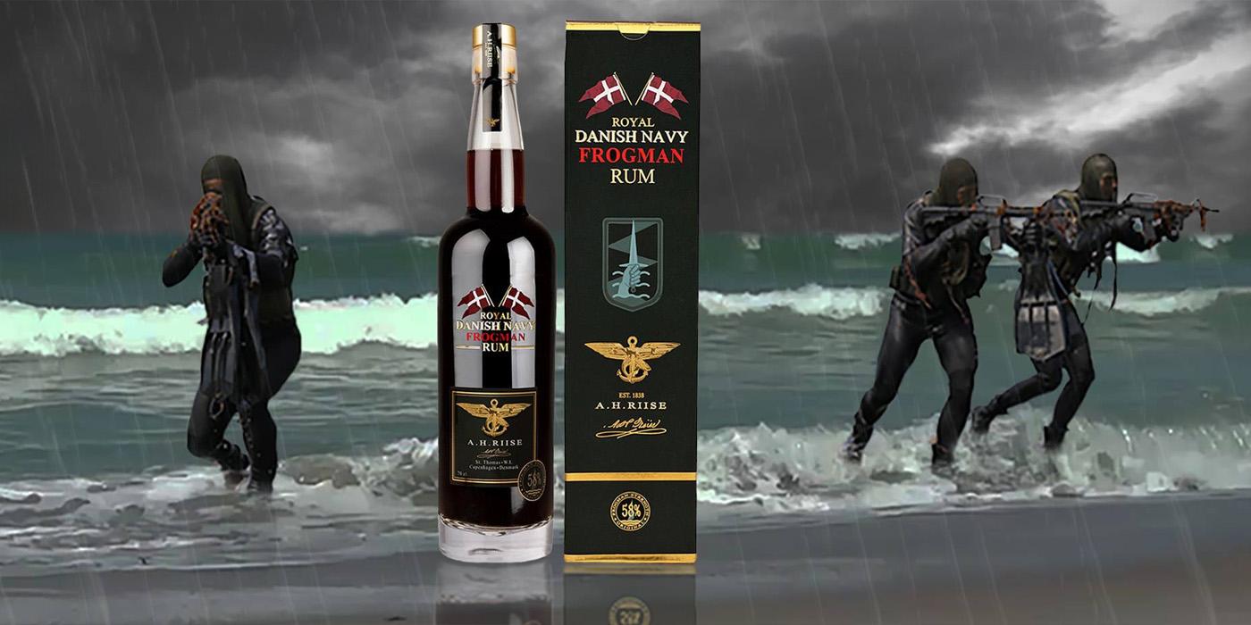 Rum A.H. Riise Royal Danish Navy Frogman Conventus Ranae si pripomína vylúžilých členov zboru Danish Frogman Corp, čo možeme voľne preložiť ako "dánske sily žabích mužov". Frogman Corps boli založené v roku 1957. Zahalený muži v čiernych oblekoch, so sieťou na hlave, pomaly sa blížiaci z vody na breh. Ich úlohou boli námorné vojenské operácie. Coventus Ranae (latinsky "zhromaždenie žiab") je formálny spolok, ktorého cieľom je posilniť väzby medzi aktívnými "žabími mužmi" a Frogmans na dôchodku.