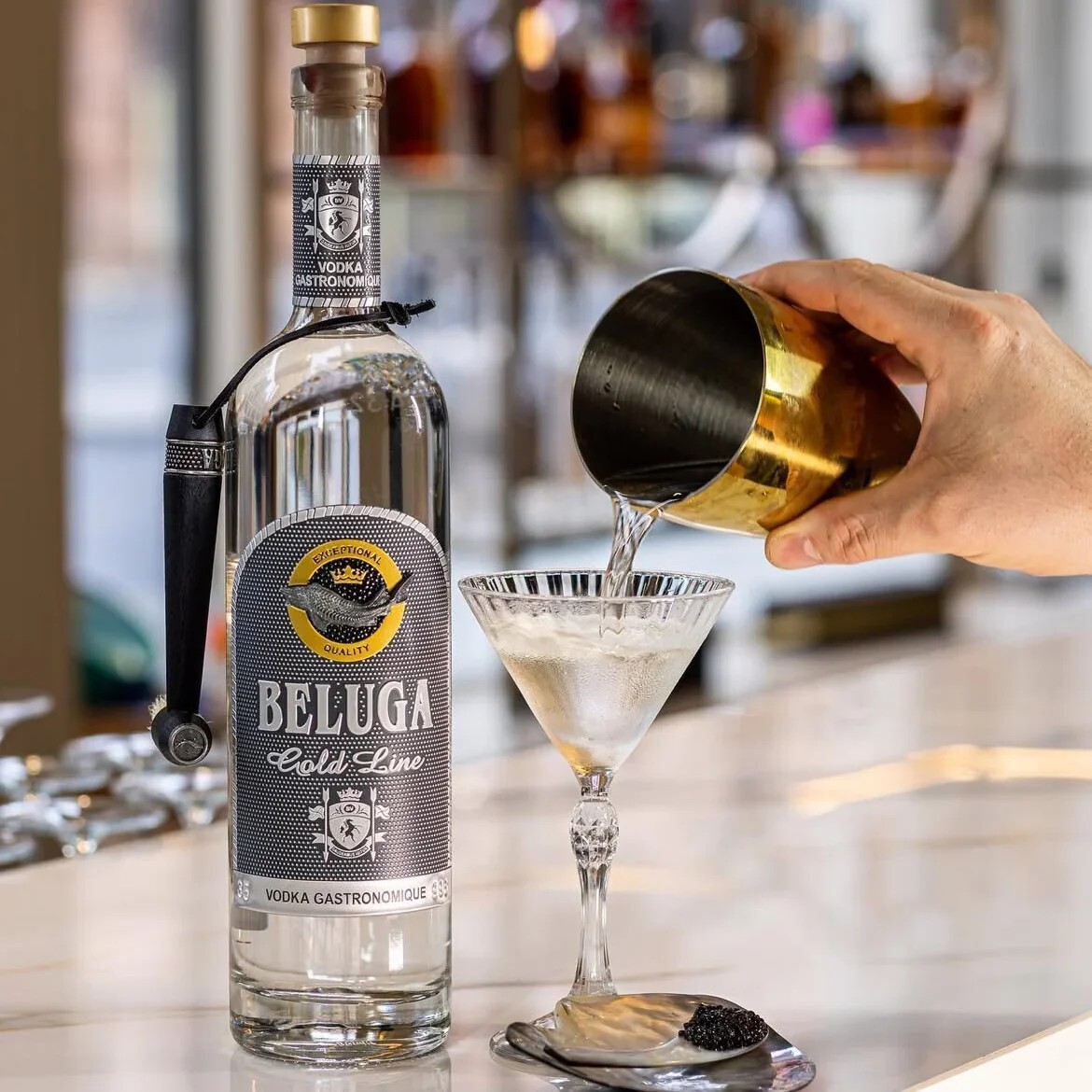 Beluga Gold Line vodka je jedna z najluxusnejších na svete. Fľaša vodky je zapuzdrená v koženej kazete, spolu so špeciálnym kladivkom, ktorý má z opačnej strany kefku.