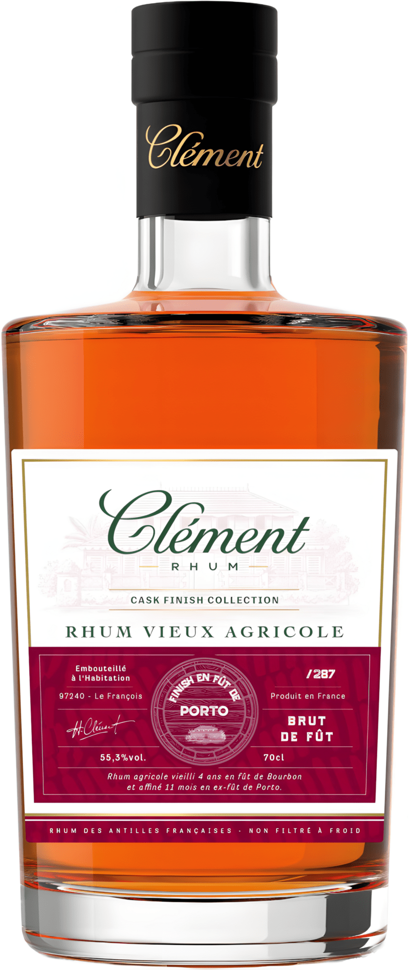 Clément Rhum Vieux Agricole Porto je exkluzívny agricole rum z ostrova Martinik, ktorý vznikol v prestížnom liehovare Habitation Clément ako limitovaná edícia zrejúca v sudoch po portskom víne.