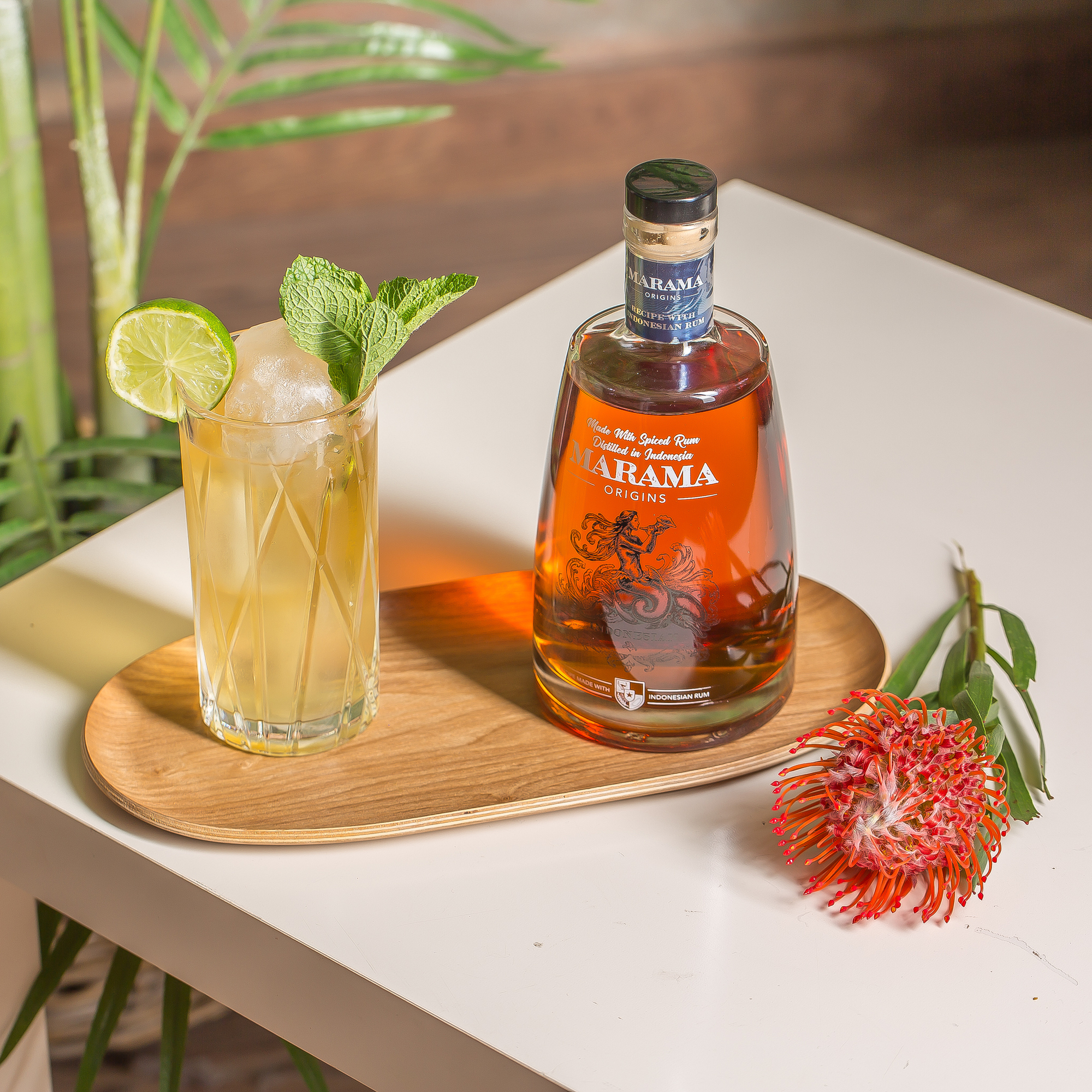 Rum Marama Origins Indonesian je vyrobený z cukrovej trstiny a destilovaný systémom continuous column. Následne je obohatený o rastlinné a ovocné extrakty typické pre juhovýchodnú Áziu, medzi ktorými nechýba ani vanilka a koreň galangalu.