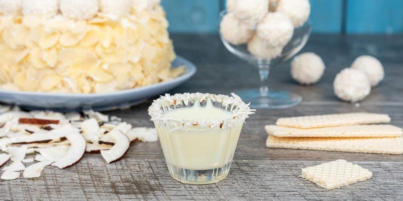 6 cl čokoládového likéru Mozart White Chocolate zmiešame s 3 cl kokosového likéru a 3 cl kondenzovaného mlieka.