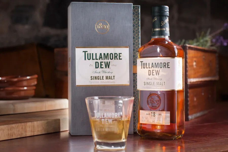 Single Malt írská whiskey Tullamore Dew 18-ročná dozrieva 18 rokov, pričom svoj charakter ešte obohacuje finishom v štyroch rôznych typoch sudov: ex-bourbon, Oloroso sherry, Port a Madeira. Je to výnimočný počin značky Tullamore D.E.W., ktorý kombinuje jemnosť írskych single malt whisky s hĺbkou vínnych sudov.