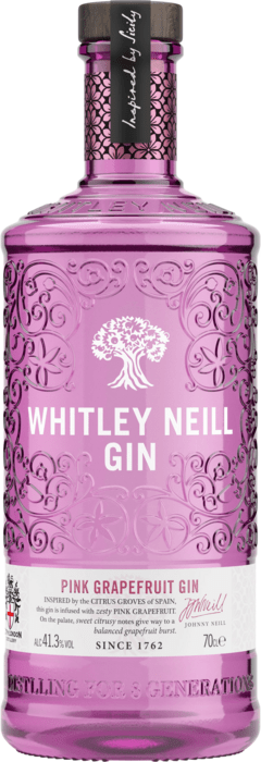 Whitley Neill Pink Grapefruit Gin je prémiový gin pochádzajúci z Anglicka, ktorý v sebe spája tradičný londýnsky štýl s moderným, ovocným poňatím. Receptúra vychádza z rodinnej destilérskej tradície a je obohatená o šťavnatý ružový grep, ktorý dodáva ginu výraznú sviežosť a jemnú horkastú eleganciu.